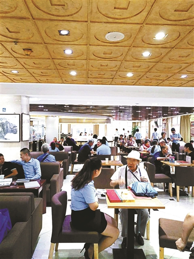 粗略統(tǒng)計(jì),不少于百人在大廳活動(dòng),投資人和銷售員各占一半,每張圓桌旁都是一位老人,一位銷售。