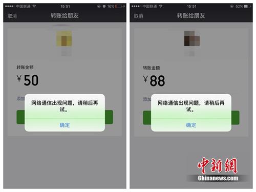 中新網(wǎng)北京8月21日電(程春雨 吳濤)21日下午,有網(wǎng)友反映,微信轉(zhuǎn)賬出現(xiàn)故障,提示“網(wǎng)絡(luò)通信出現(xiàn)問題,請稍后再試”。記者多次試驗,確實如此。不過發(fā)紅包功能不受影響。