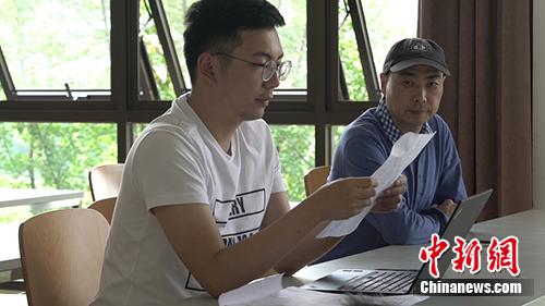 張越舟(右)在騰訊解說管理進行高校招募的現(xiàn)場。受訪者供圖