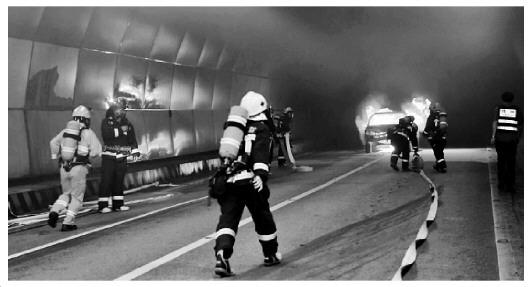 “橋梁隧道著火容易造成擁堵,消防車輛一般會采用逆向行駛的方式趕至救援,報警時一定要詳細(xì)說明事故發(fā)生地點、隧道名稱、火勢大小、基本方向等,這樣有助于合理規(guī)劃救援路線,盡快施救!眲⒀筇嵝。