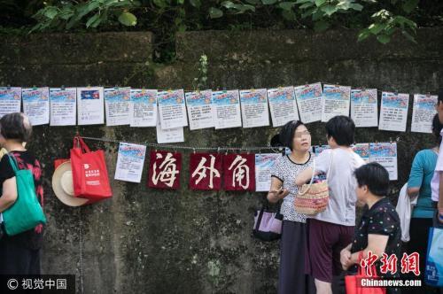 資料圖:2017年7月15日,杭州一條馬路兩邊,數(shù)百名大伯大媽前來“相親”,現(xiàn)場還特別設(shè)置了海外學(xué)子的專區(qū),貼著的大部分都是70后80后年輕人的信息。 視覺中國