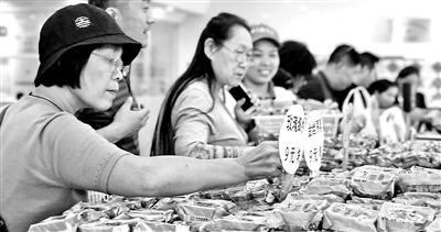本報(bào)訊(記者 李佳)75克蛋月燒抹茶紅豆月餅8元一塊、85克提漿宮餅-冰糖玫瑰月餅7元一塊……在北京老字號(hào)稻香村東直門(mén)店內(nèi),單獨(dú)包裝的小克重月餅今年銷(xiāo)量火爆。據(jù)店家介紹:“單是75克翻毛百果月餅單品一天就能賣(mài)上千塊!北本┣嗄陥(bào)記者近日走訪家樂(lè)福、華潤(rùn)萬(wàn)家超市、北京稻香村、義利食品店等月餅銷(xiāo)售點(diǎn)后發(fā)現(xiàn),今年的月餅變得更加“小、散、輕”了。