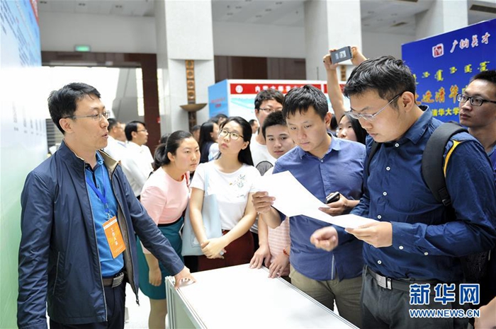 9月21日,高校的大學(xué)生在某招聘會現(xiàn)場查看資料。新華社記者 李欣 攝