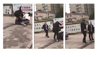 從監(jiān)控視頻中,揚(yáng)子晚報(bào)記者看到,電動(dòng)車(chē)還未停穩(wěn),黑衣男子便沖了上來(lái),拿著尖刀直接往藍(lán)衣男子的腹部插去,連續(xù)刺了四五刀后,藍(lán)衣男子便隨著電瓶車(chē)倒地,一旁拉架的白衣女子也被帶倒,但黑衣男子還是拿刀亂刺,倒地的男子強(qiáng)打精神爬起來(lái)往遠(yuǎn)處逃,但是黑衣持刀男子緊隨其后,藍(lán)衣男子又被再一次帶倒。這時(shí),駕駛私家車(chē)的女輔警立即下車(chē),衣服還沒(méi)扣好便沖過(guò)去了。