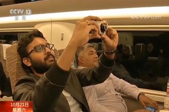 同樣是第一次來到北京的這位毛里求斯的記者,特別關注高鐵跑起來速度能有多快。盯著電子屏上逐漸顯示變快的速度,手里的照相機也一直沒停下來。