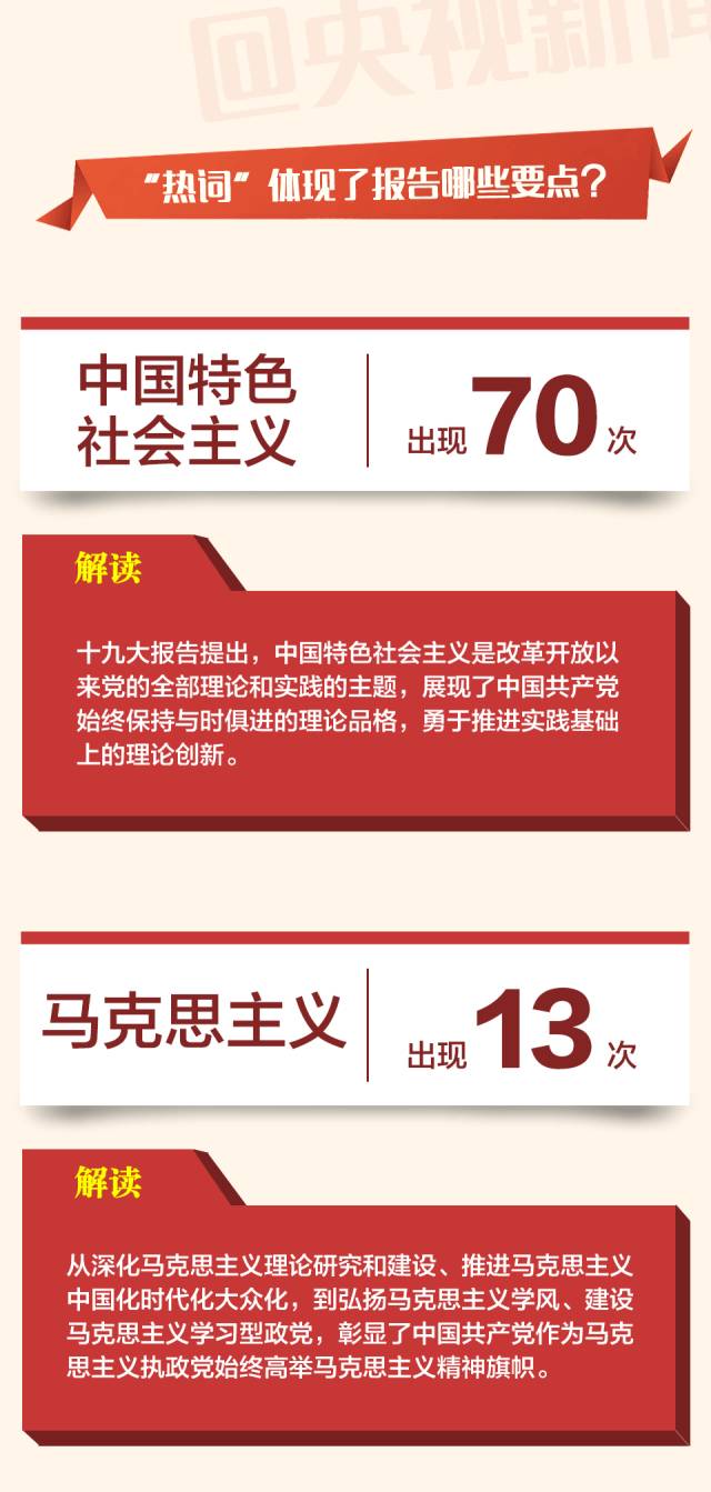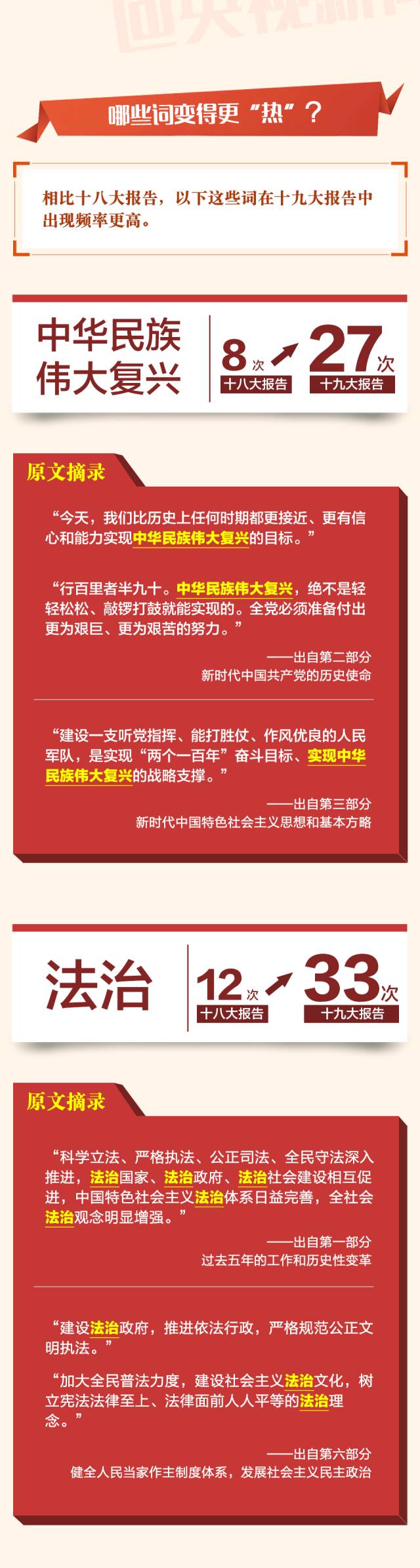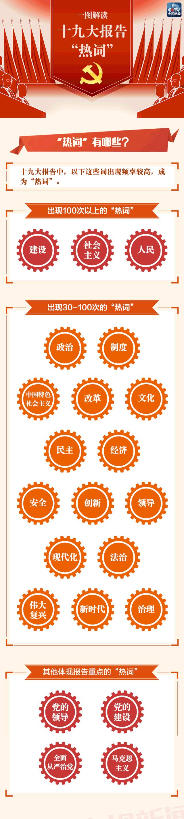 報告中哪些詞最“熱”,哪些詞預示了未來的發(fā)展方向?相比十八大報告,本次報告又有哪些全新的關(guān)鍵詞?問題的答案盡在圖中↓↓↓