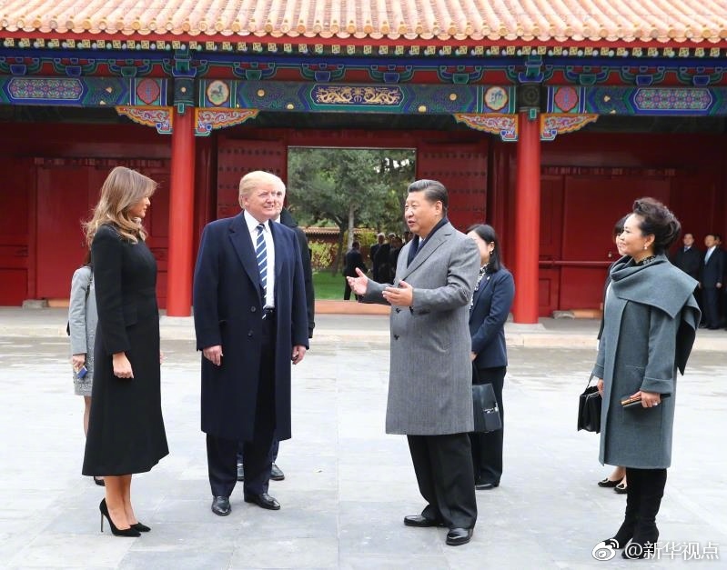 新華網(wǎng)北京11月8日電 國家主席習(xí)近平和夫人彭麗媛11月8日陪同來華進行國事訪問的美國總統(tǒng)特朗普和夫人梅拉尼婭參觀故宮博物院。(攝影:新華社記者蘭紅光、劉衛(wèi)兵、謝環(huán)馳 據(jù)新華社“新華視點”微博報道)
