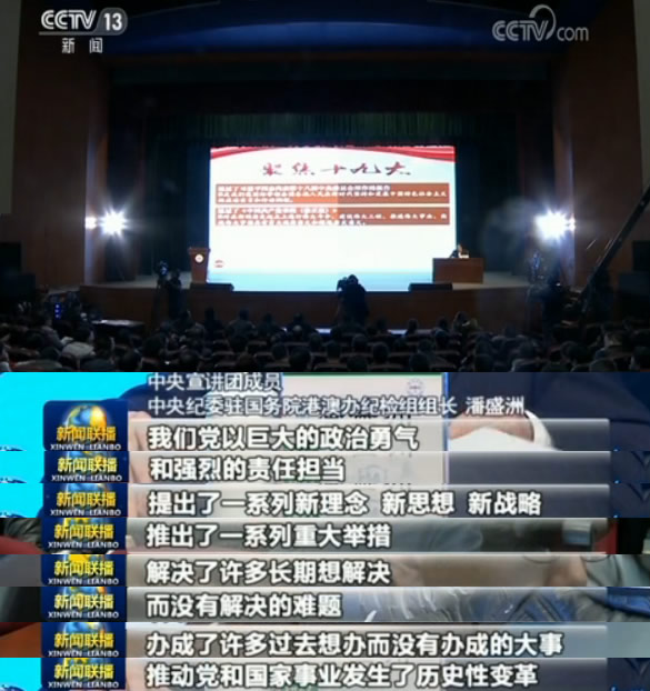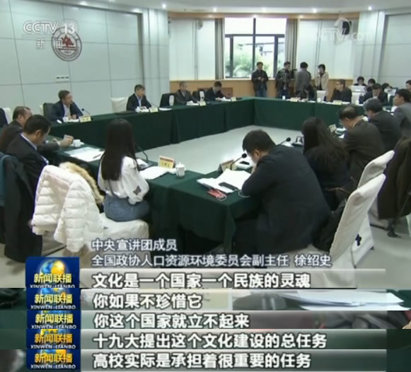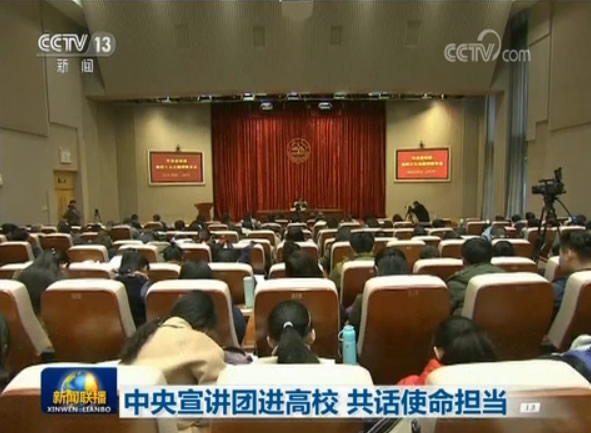 央視網(wǎng)消息(新聞聯(lián)播):連日來(lái),學(xué)習(xí)貫徹黨的十九大精神中央宣講團(tuán)走進(jìn)高校,通過(guò)透徹深入的宣講、貼近實(shí)際的解讀,讓黨的十九大精神落地生根。