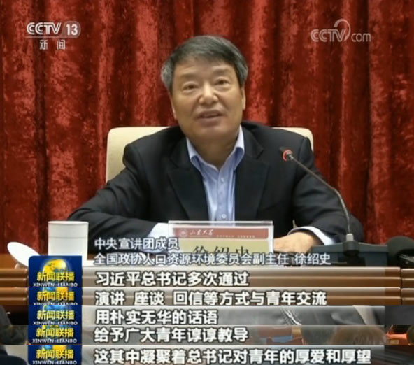 21日,中央宣講團(tuán)成員、全國(guó)政協(xié)人口資源環(huán)境委員會(huì)副主任徐紹史來(lái)到山東大學(xué)作宣講。