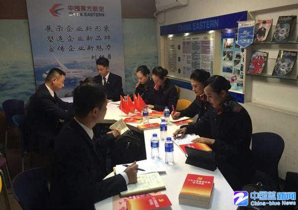 新藍(lán)網(wǎng)-中國(guó)藍(lán)新聞客戶端12月1日訊(記者王逸群 俞笛)11月30日上午,東航客艙部準(zhǔn)備室內(nèi)的桌面上擺滿了黨章、學(xué)習(xí)文件和筆記本,由上海飛往長(zhǎng)沙的航班乘務(wù)組人員正在利用出發(fā)前的時(shí)間學(xué)習(xí)黨的十九大精神和近期的新聞。他們有一個(gè)共同的身份——東航“藍(lán)天黨小組”成員。