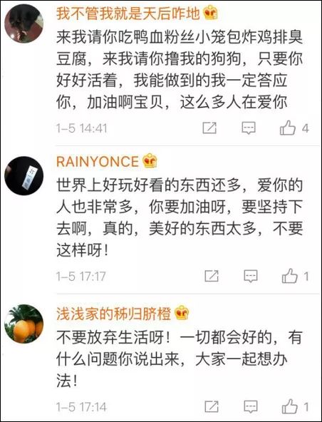 網(wǎng)友們希望,哪怕博主再稍微看一眼微博,也會(huì)發(fā)現(xiàn),這個(gè)世界并沒有想象中的那么糟,還有這么多人在關(guān)心著她。