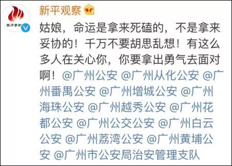 于是大家紛紛開始@廣州的各大公安微博,希望警察能幫助尋找姑娘。
