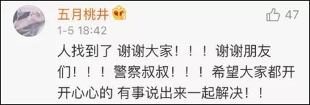 18時(shí)40分許,@我是暗器啊 終于安全地被找到了!
