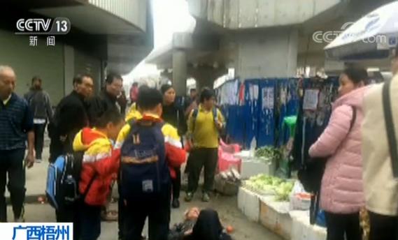 3日下午五點(diǎn)十分左右,正值下班和放學(xué)高峰期,在廣西梧州市工廠一處路口,一位頭發(fā)花白的老人不小心摔倒在地,動(dòng)彈不得,頭部擦傷。這時(shí),剛放學(xué)的幾位小學(xué)生路過(guò),看到這種情況,立刻主動(dòng)上前救助這位老人。