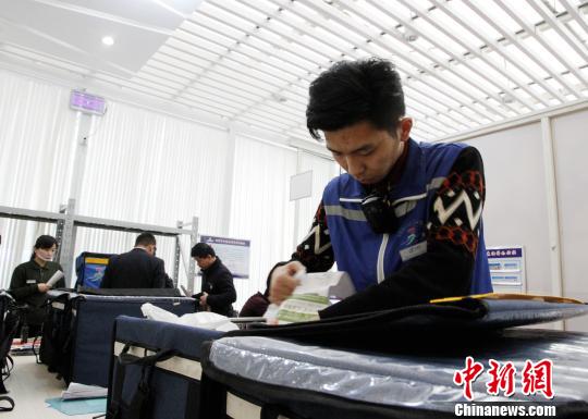 12306網(wǎng)絡(luò)訂餐濟(jì)南西站配送中心分揀員胡銀平正在核對(duì)外賣(mài)信息!∩骋(jiàn)龍 攝
