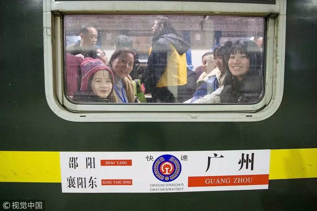 2018年2月4日,廣州火車站,乘客坐上愛心專列。