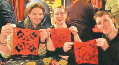 外國(guó)人學(xué)習(xí)剪紙。來(lái)自網(wǎng)絡(luò)