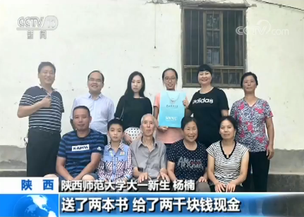 陜西師范大學(xué)地理科學(xué)與旅游學(xué)院大一新生 楊楠:送了兩本書,給了兩千塊錢現(xiàn)金,感覺(jué)很溫暖比較感動(dòng)。學(xué)費(fèi)住宿費(fèi)全免,每個(gè)月還會(huì)收到600塊的生活費(fèi)補(bǔ)助,生活上面沒(méi)有什么壓力,現(xiàn)在就是好好讀書。