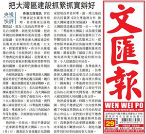 央視網(wǎng)消息:10月29日,香港《大公報(bào)》和香港《文匯報(bào)》同時(shí)轉(zhuǎn)發(fā)了中央廣播電視總臺(tái)央視新聞27日刊播的《央視快評:把粵港澳大灣區(qū)建設(shè)抓緊抓實(shí)辦好》。報(bào)道內(nèi)容如下: