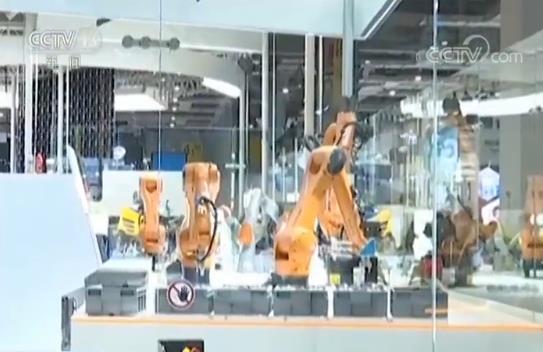 記者:“在現(xiàn)場,這家來自德國的企業(yè)搭建了一個小型的智能工廠。在這個裝配臺上,機械手臂將聯(lián)合作業(yè),向觀眾展示機器人生產的靈活、高效和精密。”