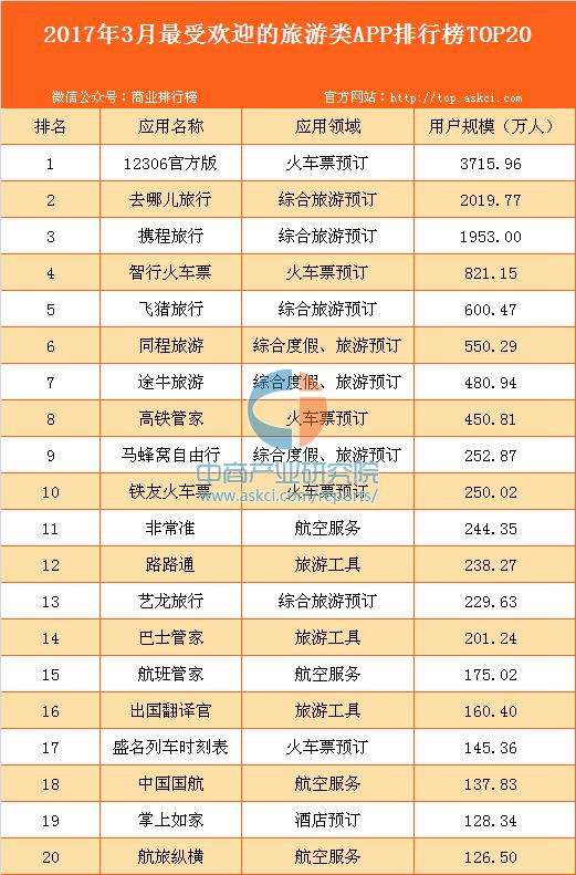2017年最受歡迎的旅游APP排行榜資料圖 (來源:中商情報網(wǎng))