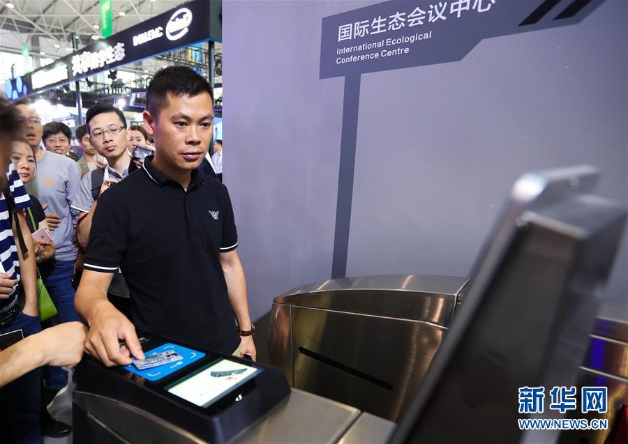 在貴州省貴陽市舉行的2018中國(guó)國(guó)際大數(shù)據(jù)產(chǎn)業(yè)博覽會(huì)上,參觀者在體驗(yàn)支付寶公交刷卡進(jìn)站系統(tǒng)(5月26日攝)。 新華社記者 劉續(xù) 攝