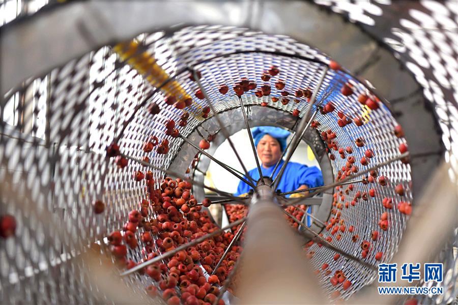 一名婦女在山東省淄博市沂源縣悅莊鎮(zhèn)一家果品企業(yè)扶貧車間勞作(12月4日攝)。新華社發(fā)(趙東山 攝)