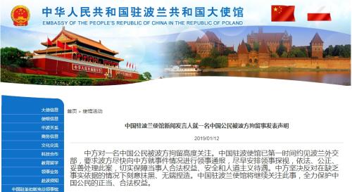 據(jù)中國駐波蘭大使館官網(wǎng)消息,大使館新聞發(fā)言人近日發(fā)表聲明稱,中方對一名中國公民被波方拘留高度關注。中國駐波使館已第一時間約見波蘭外交部,要求波方盡快向中方就事件情況進行領事通報,盡早安排領事探視,依法、公正、妥善處理此案,切實保障當事人合法權益、安全和人道主義待遇。