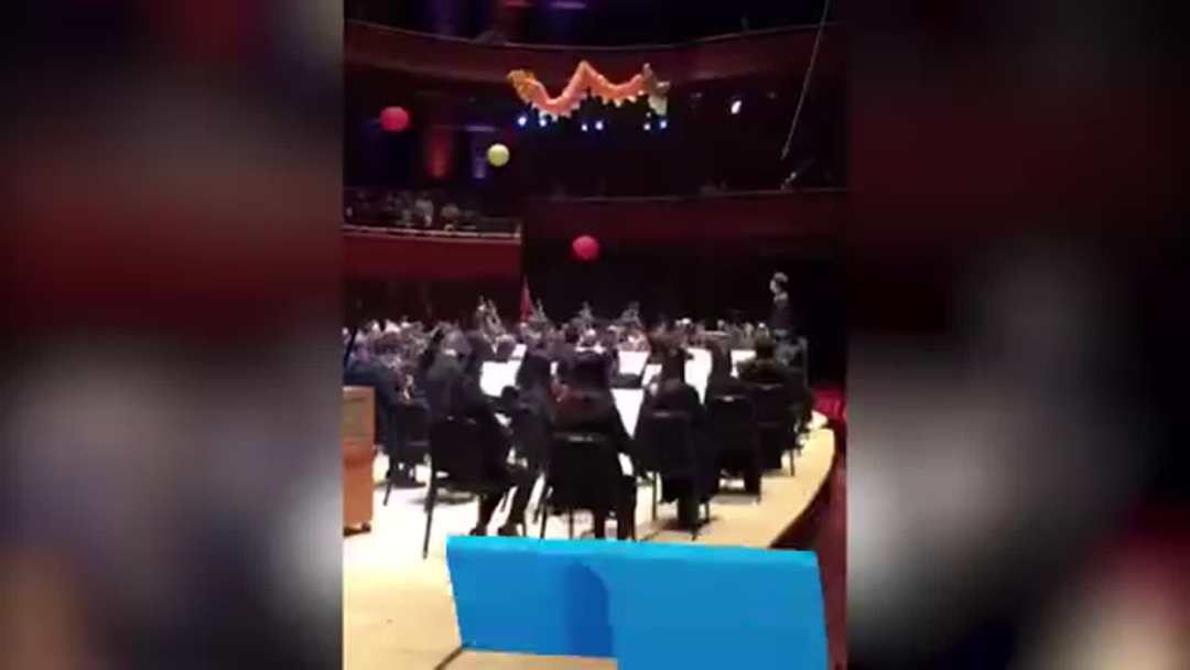 擁有2500個座位的音樂廳上空懸掛著兩條中國龍,費城交響樂團和遠道而來的上海愛樂樂團同臺,聯(lián)袂奏響了“費城首屆中國新年音樂會”。
