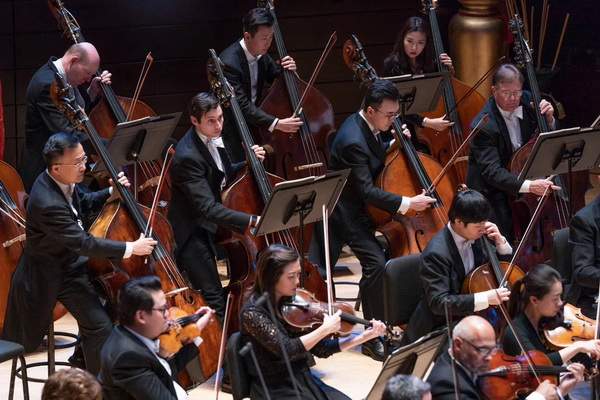 當(dāng)晚,這個擁有2500個座位的音樂廳上空懸掛著兩條中國龍,費城交響和上海愛樂用104人的聯(lián)合陣容世界首演《京劇幻想》。美國樂手與中國樂手穿插而坐,他們有著不同的膚色、不同的文化背景,卻你中有我,我中有你,共同編織出和諧的音符。