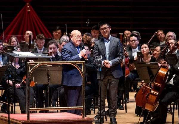 最后一個音符落下后,在龔天鵬的邀請下,79歲的尚長榮出現(xiàn)在舞臺上。他健步如飛,聲如洪鐘,帶著戲曲腔對所有觀眾說,“音樂是最美好的聲音,音樂給人類帶來福祉,音樂是超越國界的存在。希望兩個樂團的合作源遠流長,兩國人民的文化藝術(shù)交流代代相傳!