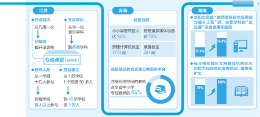 然而,要充分發(fā)揮教育信息化的優(yōu)勢(shì),還需實(shí)現(xiàn)信息化手段從“用起來”到“用得好”轉(zhuǎn)變。這就需要依靠培訓(xùn),使教育管理部門和一線師生的信息化素養(yǎng)同步提升。湖南多地實(shí)行四級(jí)培訓(xùn)制度:通過“國(guó)培計(jì)劃”等,培訓(xùn)中小學(xué)校長(zhǎng)及教育主管部門人員;通過湖南省中小學(xué)教師信息技術(shù)應(yīng)用能力提升工程,培訓(xùn)信息技術(shù)骨干教師和專任骨干教師;通過組織電化教育館及高校等單位的專家學(xué)者赴基層,培訓(xùn)教育信息化基礎(chǔ)教師;培育出來的“種子教師”,為所在學(xué)校的科任教師普及教育信息化知識(shí)。