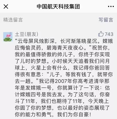王夕的媽媽在看到發(fā)射成功的消息后,寫(xiě)下了這樣的留言