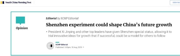文章最后總結道,與香港毗鄰的中國高科技之都,曾經(jīng)是中國改革開放試驗田,又將成為一個新的經(jīng)濟特區(qū),為中國其他城市樹立一個更大膽改革的榜樣。