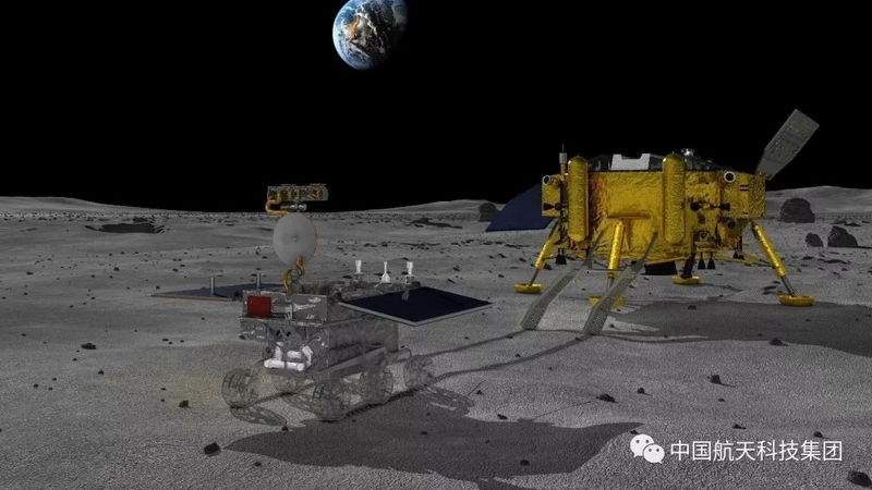 ▲ 2019年,由航天科技集團抓總研制的嫦娥四號探測器實現(xiàn)了人類航天器首次月球背面軟著陸與巡視探測
