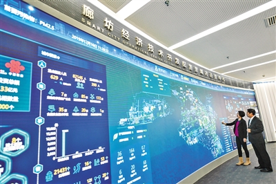 在河北廊坊開發(fā)區(qū)智慧城市運營中心,工作人員在對數(shù)據(jù)進行分析。新華社發(fā)