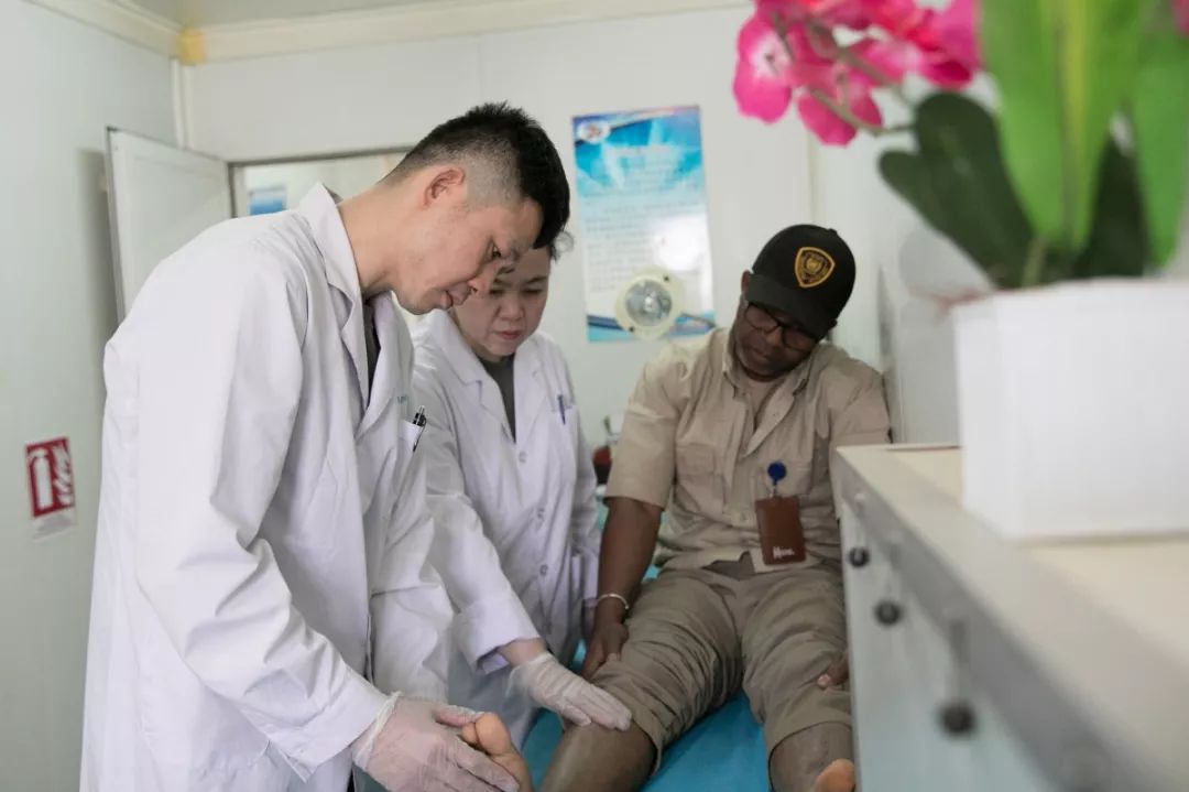 右腿腫脹的聯(lián)馬團安保部門工作人員做檢查