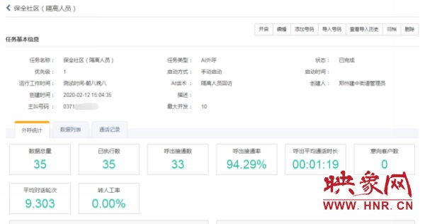 節(jié)后返鄭人員呈現(xiàn)動態(tài)化增長,截至目前,街道已排查出省外及省內(nèi)重點疫區(qū)返鄭人員775人,省內(nèi)其他地區(qū)返鄭人員448人,通過AI人工智能外呼平臺操作,對居家隔離人員是否在家、體溫狀況、身體癥狀、隔離期限進行確認,街道每日僅需1小時即可完成對所有居家隔離人員電話監(jiān)測,少量占線、無人接聽等情況再由人工逐一聯(lián)系,隔離人員健康狀況可以及時反饋給社區(qū),大大提高了工作效率。