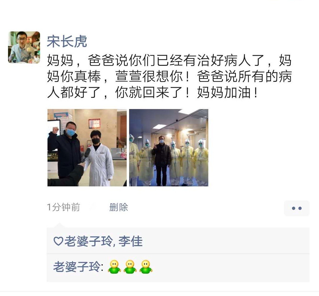 我想媽媽,但是我要忍住,支持她。我的媽媽是最美的天使,也是最厲害的白衣戰(zhàn)士。媽媽加油!武漢加油!