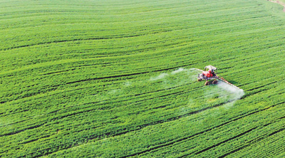 日前在湖北省襄陽(yáng)市高新技術(shù)產(chǎn)業(yè)開(kāi)發(fā)區(qū)李沖村,大型植保機(jī)械在麥田噴灑農(nóng)藥和葉面肥。