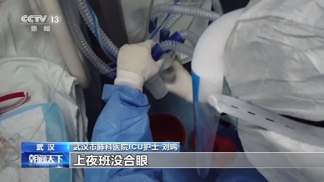 武漢市肺科醫(yī)院ICU護(hù)士 劉鳴:上夜班沒合(過)眼就一直在旁邊守著看著。一個(gè)病人連著三四臺(tái)機(jī)子,有的是心電監(jiān)護(hù)的機(jī)子,上面有他的血氧飽和度,血壓、心率這些值,有些病人病情變化挺快的,本來血壓很好,然后突然一下血壓就降下來了,我們要及時(shí)去處理。