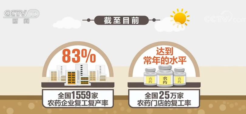 在中央和各地的強力支持下,農(nóng)資企業(yè)產(chǎn)能加快恢復(fù)。截至目前,全國1559家農(nóng)藥企業(yè)復(fù)工復(fù)產(chǎn)率83%,25萬家農(nóng)藥門店的復(fù)工率達到常年的水平;主要化肥品種氮、磷、鉀肥總體供應(yīng)充足;當前所急需的小麥條銹病、赤霉病等用藥涉及的農(nóng)藥企業(yè),復(fù)工復(fù)產(chǎn)率94%,能夠滿足農(nóng)藥需求。全國最大的農(nóng)資流通企業(yè)——中國農(nóng)業(yè)生產(chǎn)資料集團公司14個化肥生產(chǎn)基地和2個農(nóng)藥生產(chǎn)基地滿負荷運轉(zhuǎn),化肥和農(nóng)藥產(chǎn)量占到全國總量的五分之一。