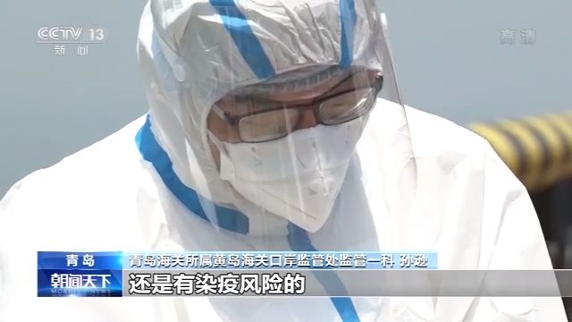 青島海關(guān)所屬黃島海關(guān)口岸監(jiān)管處監(jiān)管一科 孫遜:在檢測結(jié)果沒有出來之前,我們認(rèn)為這條船上的船員還是有染疫風(fēng)險的,所以說我們做好防護(hù)也是對自己的一種保護(hù)。