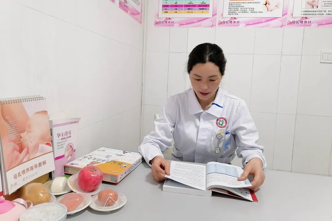 在四川都江堰市醫(yī)療中心病房里,楊秋一邊給新手媽媽示范,一邊耐心指導(dǎo),不一會(huì)兒,臂彎里的小寶貝就在母親溫暖的懷里睡著了。