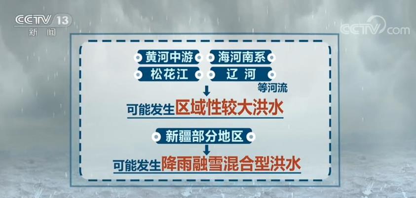 另據(jù)氣象部門預測分析,今年7月至8月,全國降雨總體偏多,南北方均有多雨區(qū),以北方雨帶為主,其中山西、河北、山東、黑龍江、內(nèi)蒙古、新疆等地部分地區(qū)降雨較常年同期可能偏多3—5成。受此影響,黃河中游、海河南系、松花江、遼河等河流可能發(fā)生區(qū)域性較大洪水,新疆部分地區(qū)可能發(fā)生降雨融雪混合型洪水。