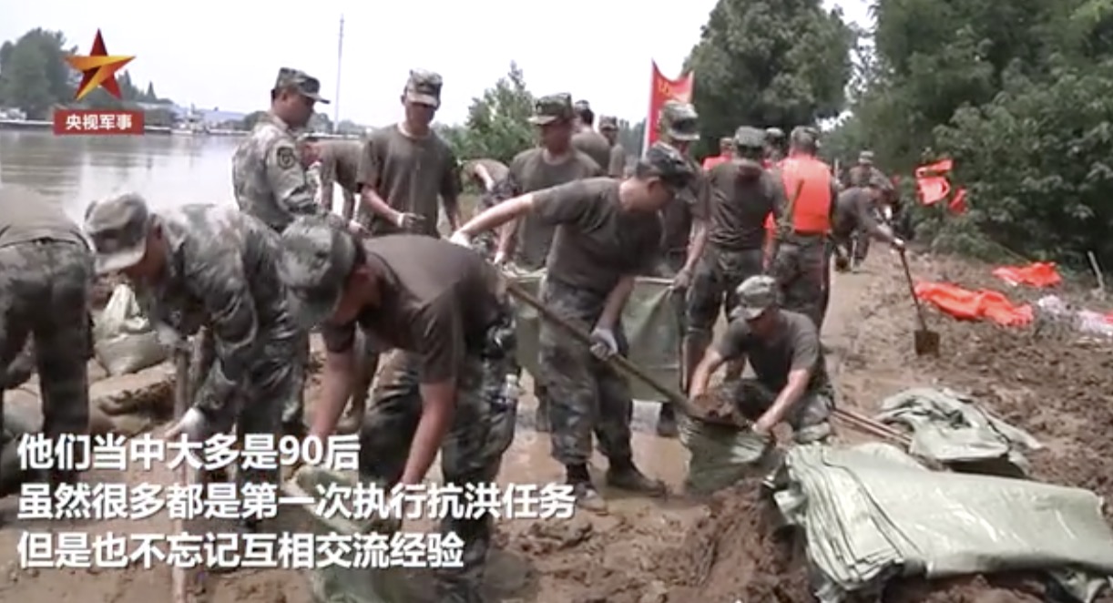 7月19日凌晨,安徽肥西縣境內(nèi)豐樂河堤防突發(fā)險情,國防科技大學(xué)電子對抗學(xué)院緊急集合120余名官兵組成首批抗洪突擊隊,星夜馳援,固堤壩、構(gòu)子堤、堵管涌,盡最努力保障人民生命財產(chǎn)安全。他們中百分之九十都是在校學(xué)員,是名副其實的學(xué)霸,對他們來說,沒有什么碩士博士,上了堤壩都是抗洪戰(zhàn)士。