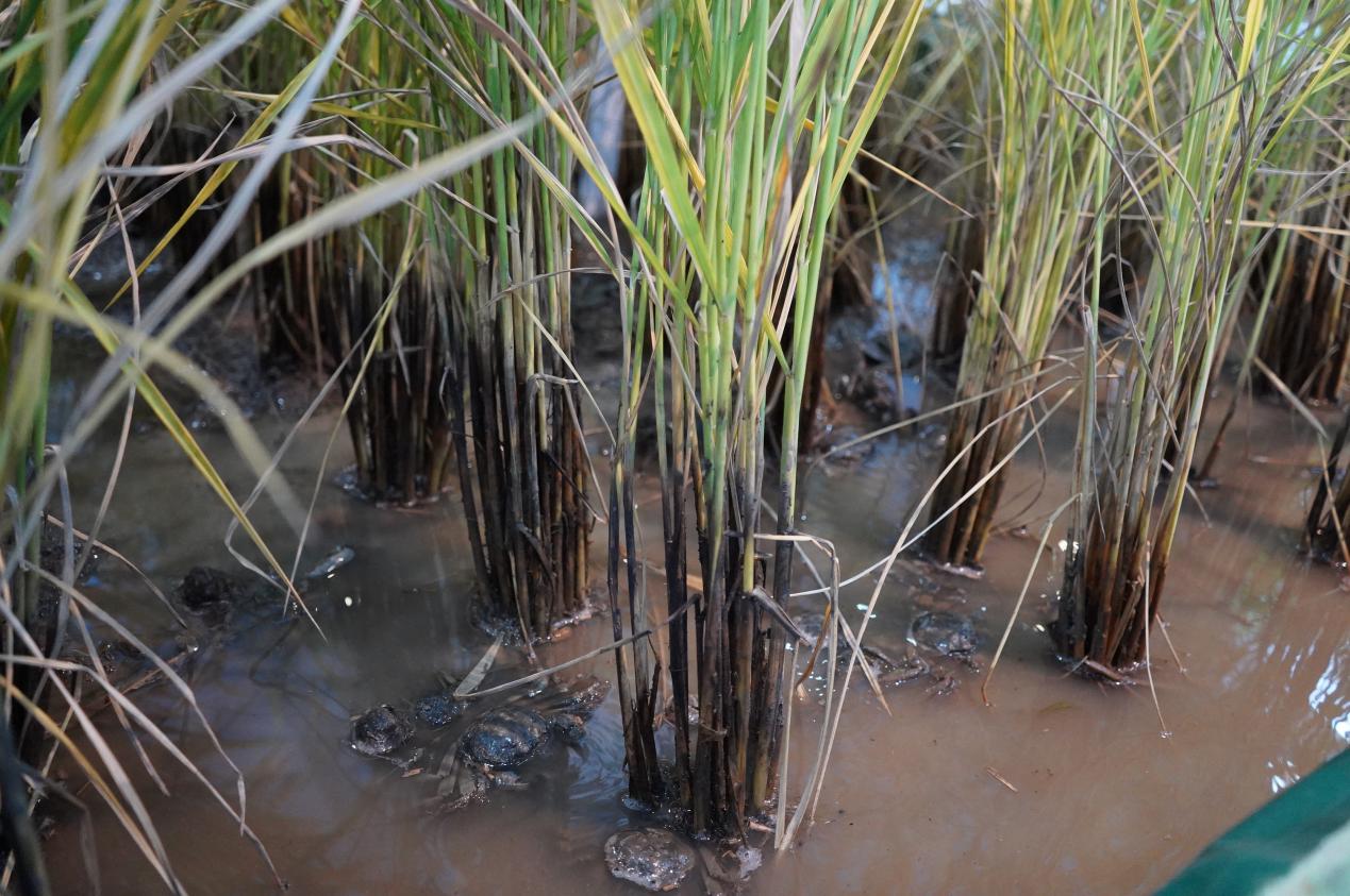 作為“中國(guó)生態(tài)稻米之鄉(xiāng)”“中國(guó)河蟹第一市”,“稻田養(yǎng)蟹”已成為盤(pán)錦的城市名片之一。所謂稻蟹共生模式,指“用地不占地,用水不占水”和“一地兩用,一水兩養(yǎng),一季雙收”,河蟹在對(duì)稻田環(huán)境起到“監(jiān)控作用”的同時(shí),還能清除稻田雜草,預(yù)防水稻病蟲(chóng)害,其糞便還能為水稻提供有機(jī)肥料。稻蟹共生形成一條完整的生物鏈,不僅提高了資源利用率,增加了農(nóng)民收入,而且生態(tài)環(huán)境得到了改善,也為生產(chǎn)優(yōu)質(zhì)生態(tài)稻米提供了良好的條件。