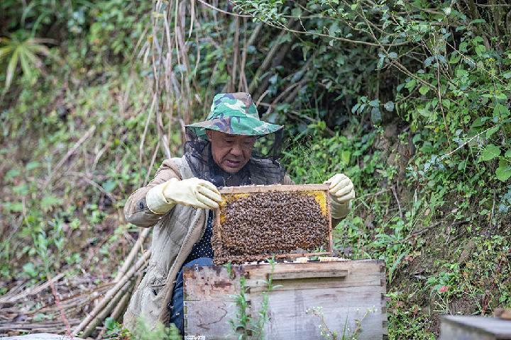 粉刷房屋外墻、申報(bào)蜂蜜品牌……廟壩村中蜂養(yǎng)殖大戶何仕華最近正忙著準(zhǔn)備“搖蜜節(jié)”,以吸引更多游客來體驗(yàn)搖蜜,購買蜂蜜。
