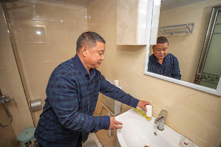 ↑在重慶市南川區(qū)山王坪鎮(zhèn)廟壩村,村民程坤詳檢查整理自家經(jīng)營的民宿房間,提前為國慶小長假接待游客做準(zhǔn)備(9月28日攝)。