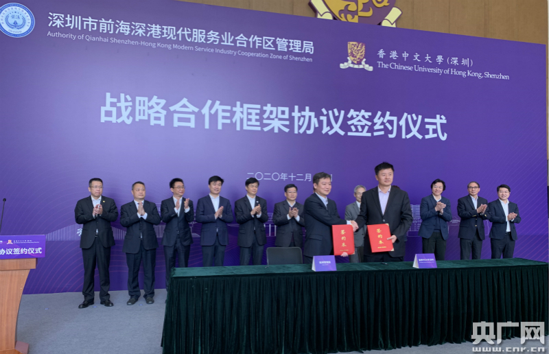 央廣網(wǎng)深圳12月7日消息(記者黃倩)深圳市前海深港現(xiàn)代服務(wù)業(yè)合作區(qū)管理局(以下簡稱前海管理局)與香港中文大學(xué)(深圳)[以下簡稱港中大(深圳)]戰(zhàn)略合作框架簽約儀式今天(7日)在深圳舉行。雙方將探索政府與大學(xué)合作新模式,在制度創(chuàng)新、科技創(chuàng)新、現(xiàn)代服務(wù)業(yè)、教育、醫(yī)療、社會(huì)民生等多領(lǐng)域開展創(chuàng)新性深度務(wù)實(shí)合作。